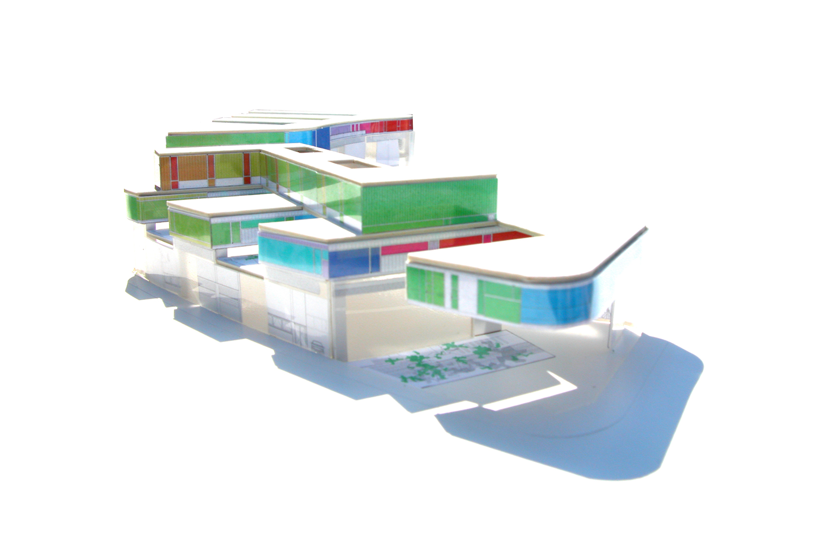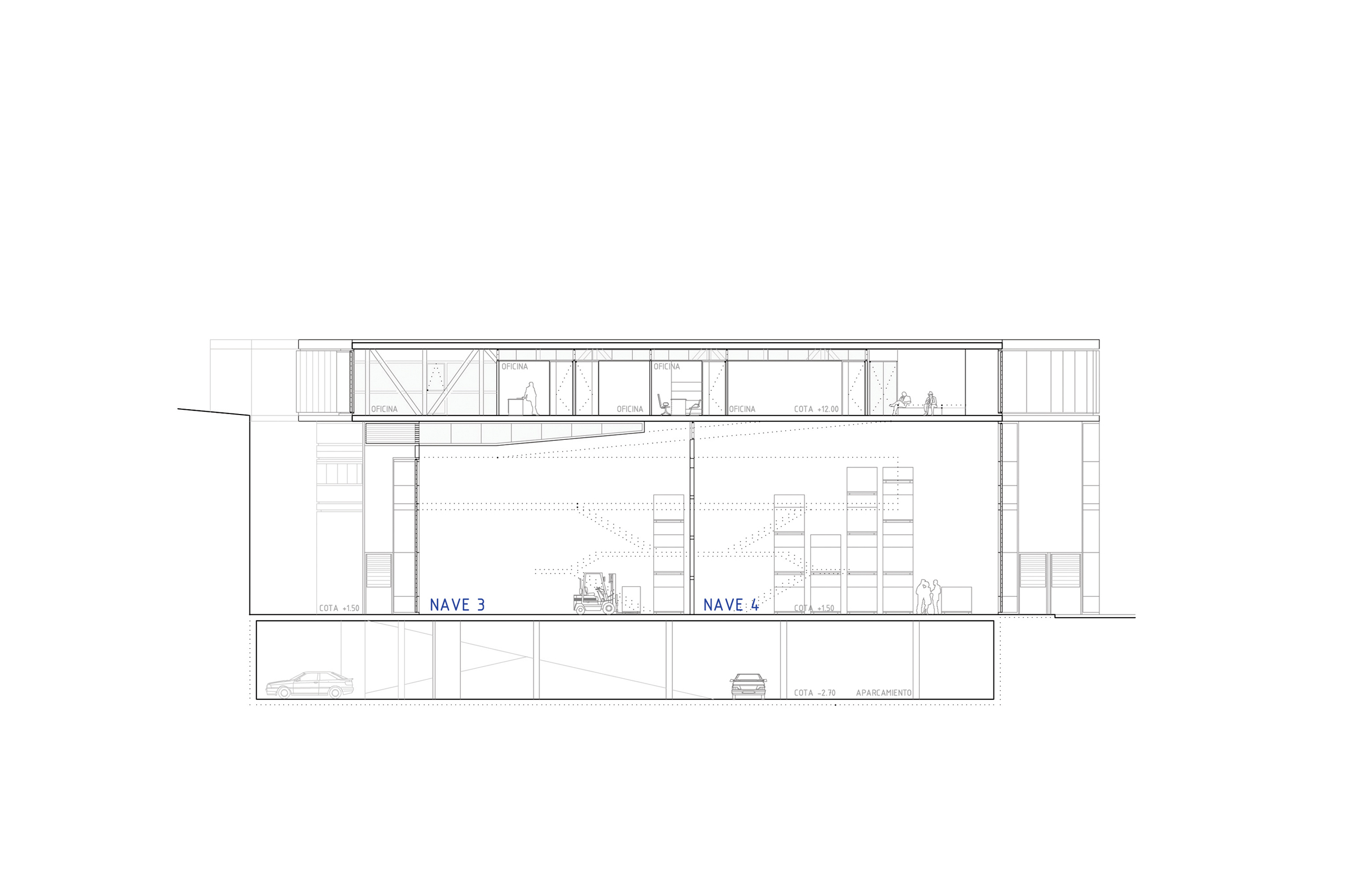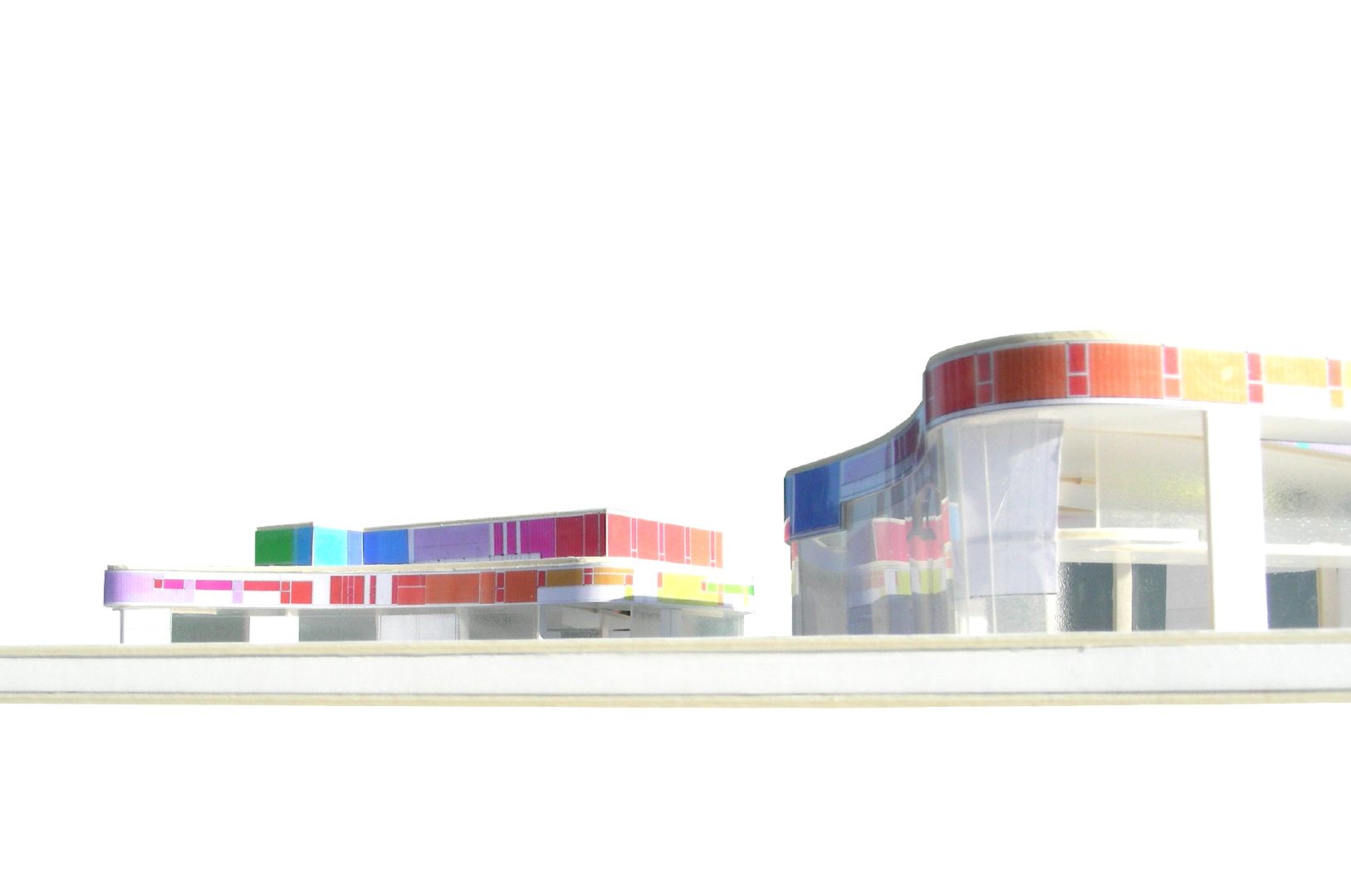 El tejido en el que se dispondrán los Centros tiene una importante densidad acorde a los usos que en él se disponen y aunque se sitúan en uno de los límites del polígono, entendemos que uno de los objetivos a la hora de desarrollar este proyecto debe ser facilitar el rápido reconocimiento de los ciudadanos que accedan a éstos centros, así como generar una imagen identificable. Para conseguir esto, planteamos que ésta imagen sea producida por la propia expresión formal de las oficinas y locales, de modo que, dada su disposición elevada, se entiendan como cintas de color perceptibles desde múltiples lugares.