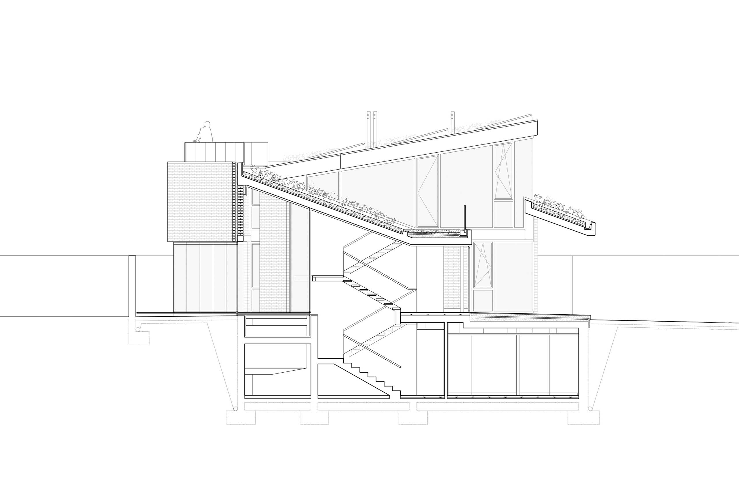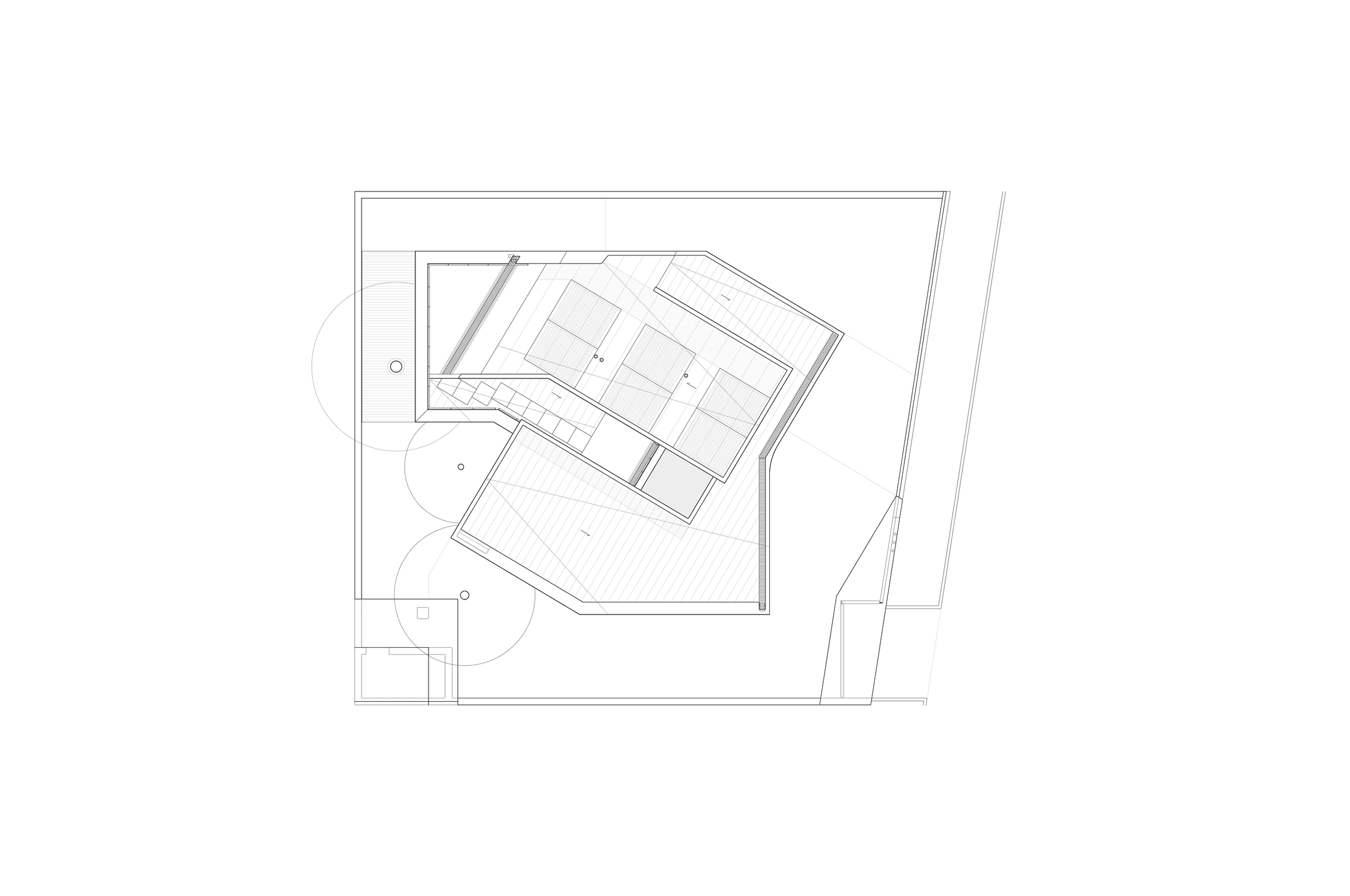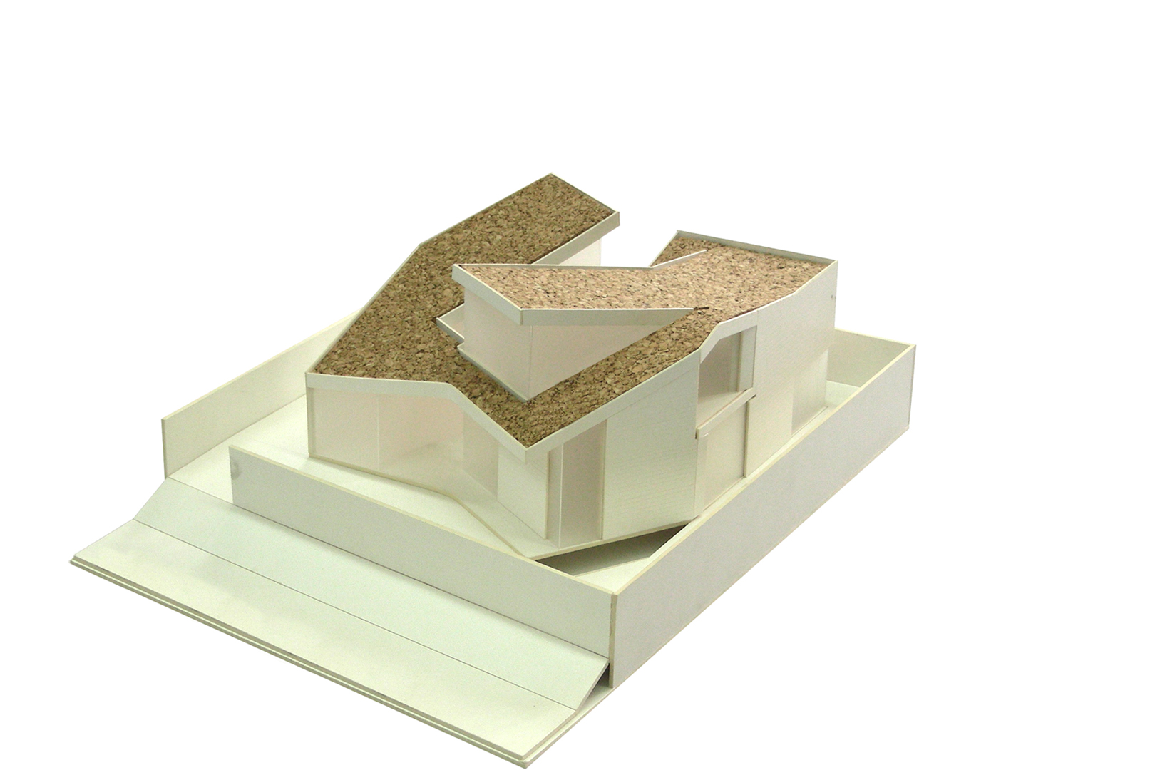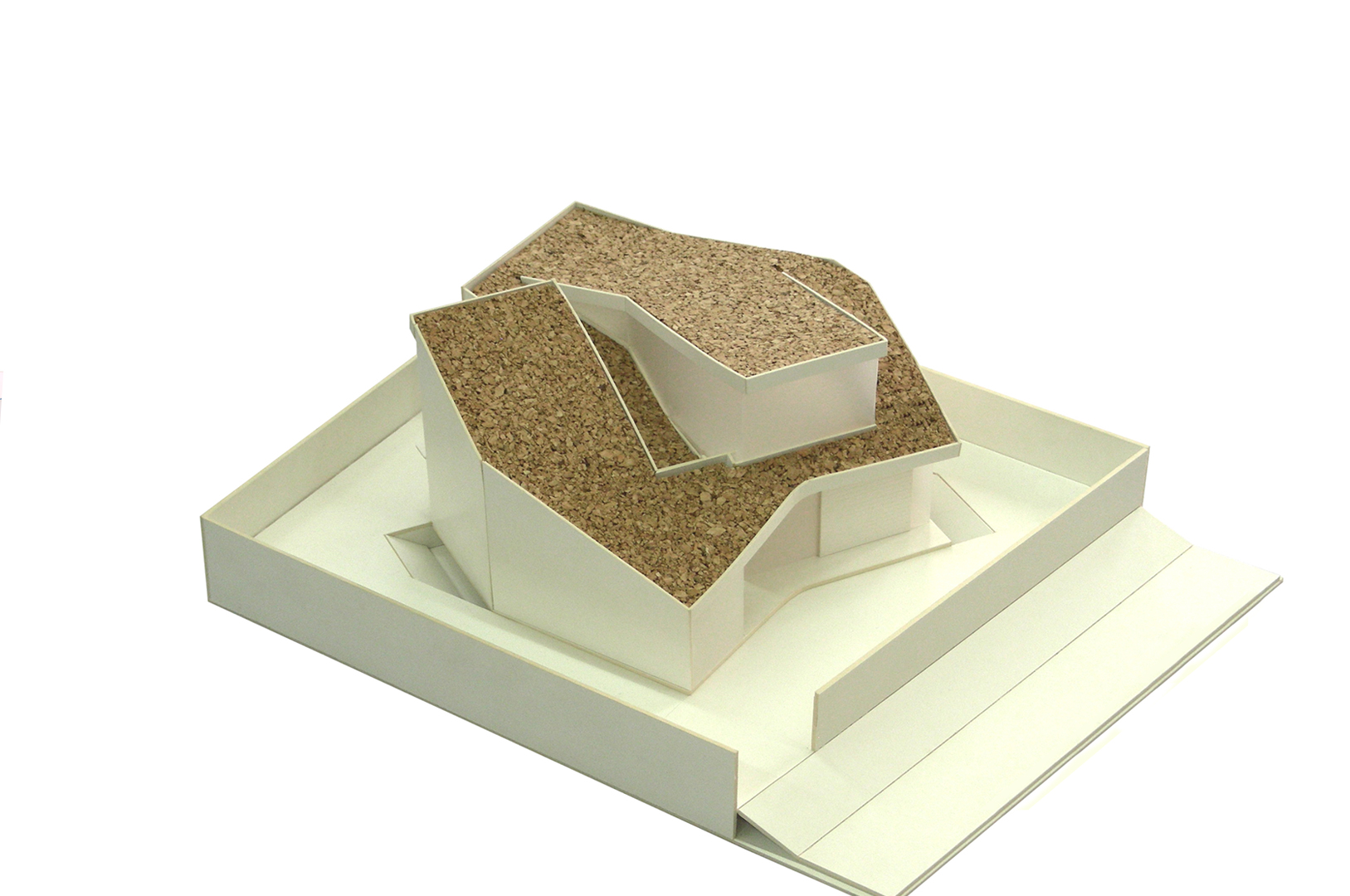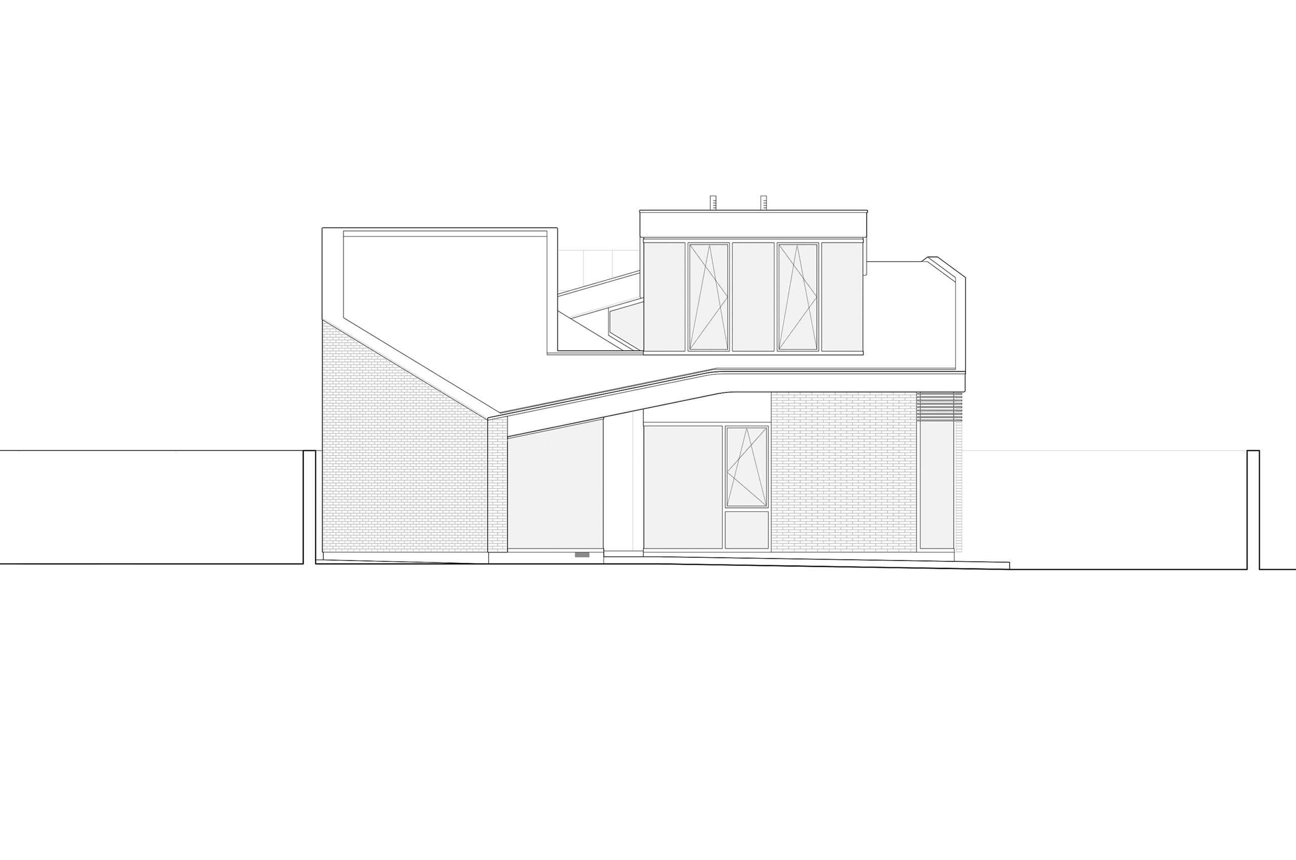 La edificación se presenta como un volumen claro de ladrillo cara vista Klinker blanco donde la geometría de la cubierta (un único gesto que se pliega sobre si mismo a modo de "espiral") determina tanto la forma de la edificación como su distribución del programa. Se ha limitado la cubierta a dos inclinaciones (10º y 20º). Se realiza un voladizo de la cubierta en el frente Norte, por donde se realiza el acceso, coincidiendo con el punto mas bajo de la vivienda. A esta fachada se abren la cocina, el salón y la habitación principal. En planta primera, aparece un volumen acristalado a modo de mirador, que alberga un pequeño estudio.