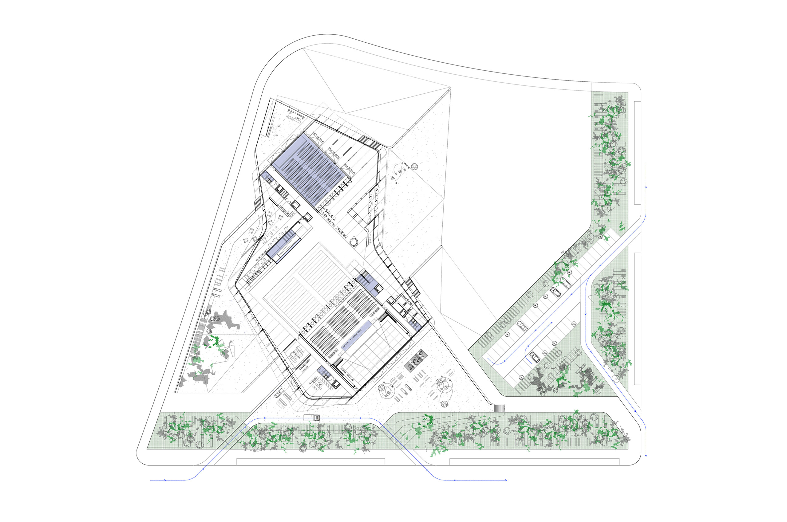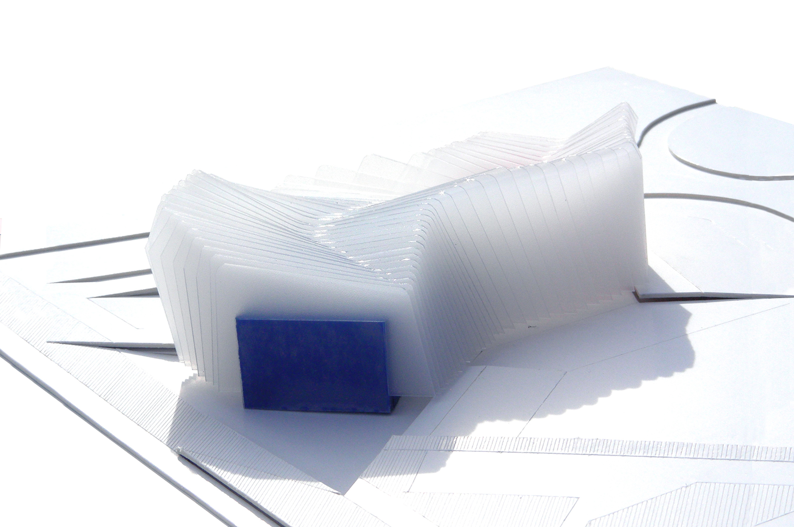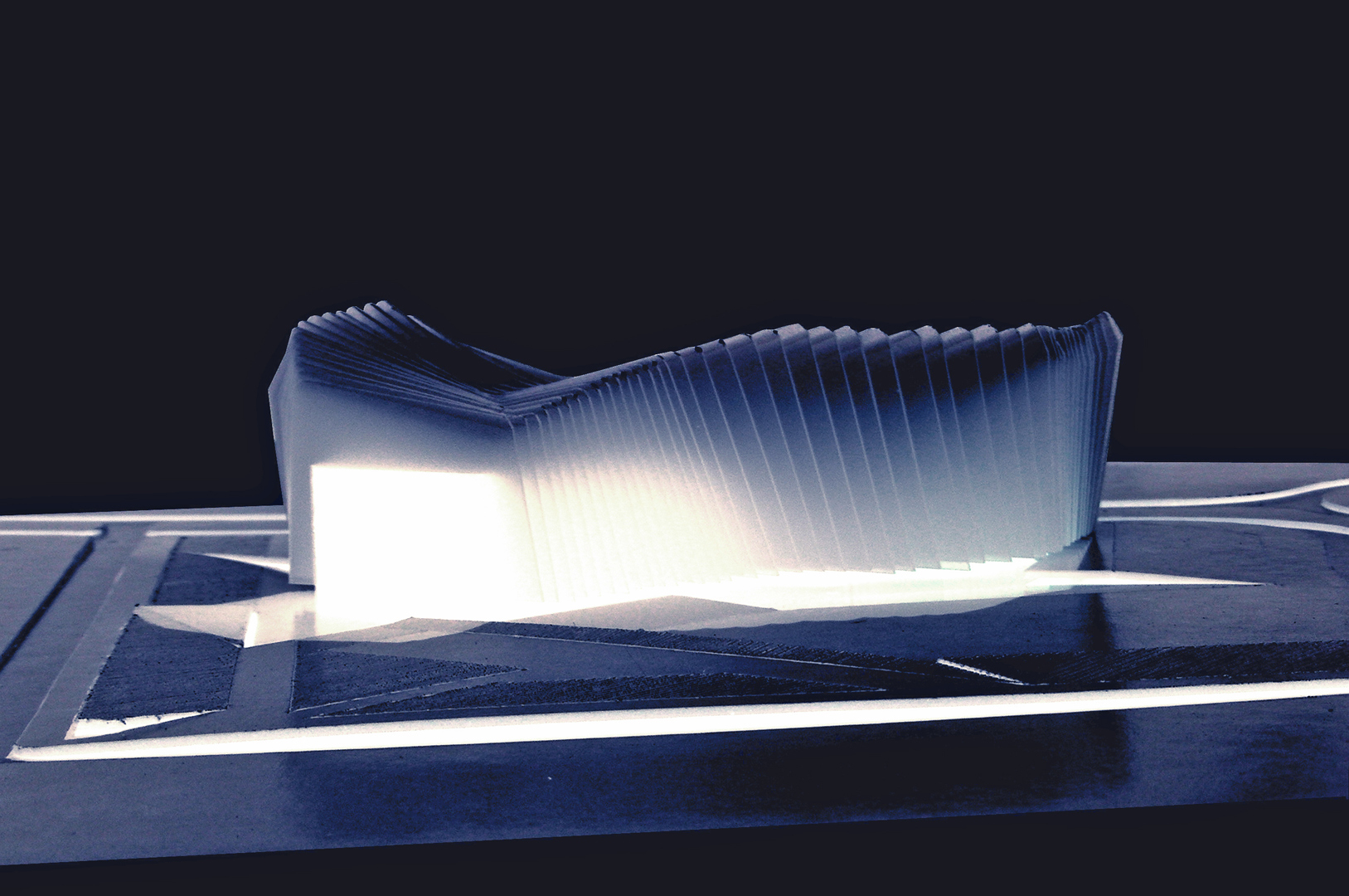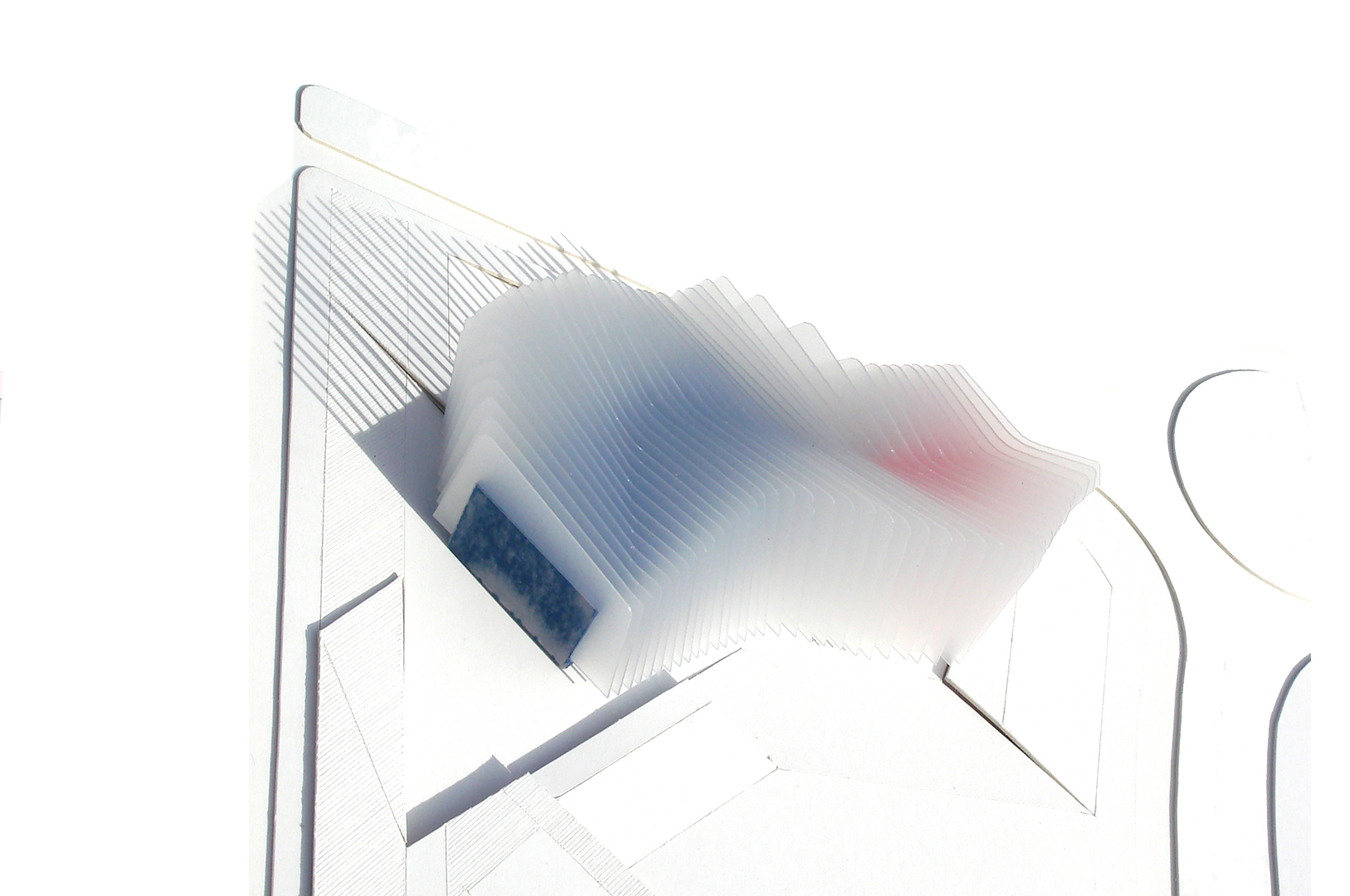 Entendemos el Palacio de Exposiciones y Congresos como el resultado de la superposición de múltiples planos a modo de escenarios colgados. De este modo, su diversa geometría, contenido, iluminación y transparencia determinarán la expresión formal del proyecto. Estos planos tamizarán y controlarán la entrada de luz, albergarán la estructura e instalaciones, posibilitarán particiones flexibles y funcionarán como soporte de información de los diferentes acontecimientos que en el Palacio de Exposiciones y Congresos se desarrollen. Bajo estos planos aparece un gran suelo horizontal donde se desarrollan, sin cambios de cota innecesarios, todas las actividades que albergue el proyecto.
