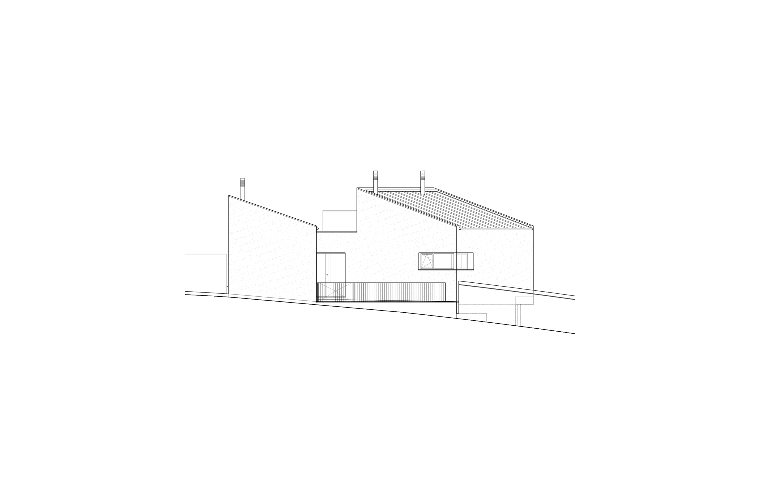 Se trata de una vivienda unifamiliar situada en el casco urbano de la localidad segoviana de Valleruela de Pedraza, en una parcela en esquina con forma irregular, aunque sensiblemente triangular, con acceso rodado y peatonal por dicha esquina. La parcela tiene una fuerte pendiente en el sentido Este – Oeste. La edificación se compone de dos volúmenes diferenciados, volumen A (dormitorios y aseos) y B (salón, comedor, cocina, aparcamiento e instalaciones), cada uno de ellos con planta rectangular y cubierta inclinada a 1 agua. Dichos volúmenes, girados entre sí en planta, se articulan a través de un cuerpo más bajo y de cubierta plana, donde se incorporan las comunicaciones verticales y horizontales.