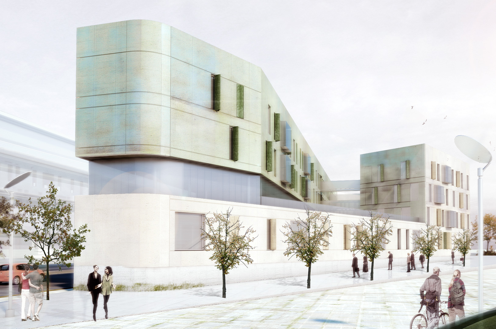 Cliente: UTE Aegis inmo - Honhle Superficie construida: 15.679,05 m2 Procedimiento: 1º premio en procedimiento de cesión de derechos de superficie con el Ayuntamiento de Fuenlabrada Estado: en proceso Colaboradores: Artecnia servicios arquitectónicos, Ditec.
