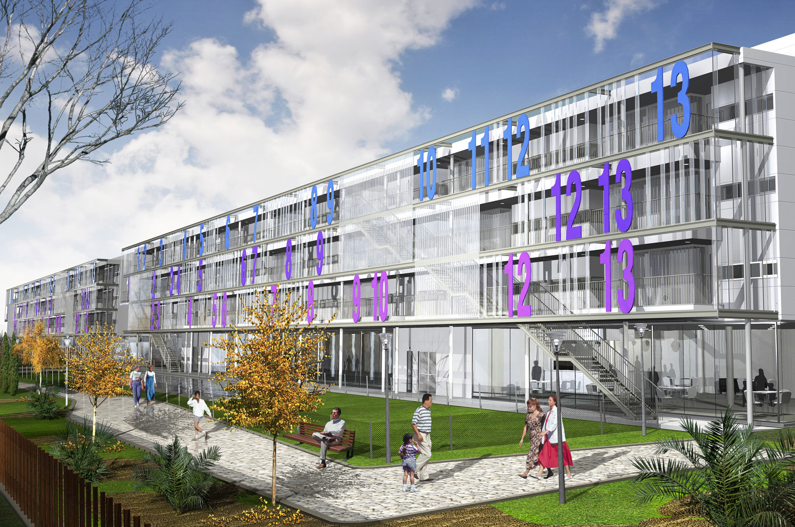 Concurso: 1º premio en procedimiento de cesión de derechos de superficie con el Ayuntamiento de Fuenlabrada Estado: en proceso Colaboradores: Artecnia servicios arquitectónicos, Ditec. La actuación tiene por objetivo posibilitar la realización de viviendas públicas destinadas a paliar la deficiente situación de acceso a la vivienda que sufren fundamentalmente las capas más jóvenes de la población. Se plantea así la creación de viviendas públicas en régimen de alquiler para jóvenes. Dichas viviendas no tendrán más de 1 dormitorio, de modo que el consumo de superficie sea lo menor posible, permitiendo así disponer de un precio de arrendamiento razonable y al alcance del sector al que se destina. Nuestro primer objetivo consiste en conseguir unas viviendas pasantes, flexibles, saludables y que aprovechen ésta condición tipológica para resolver los condicionantes bioclimáticos de manera sostenible.