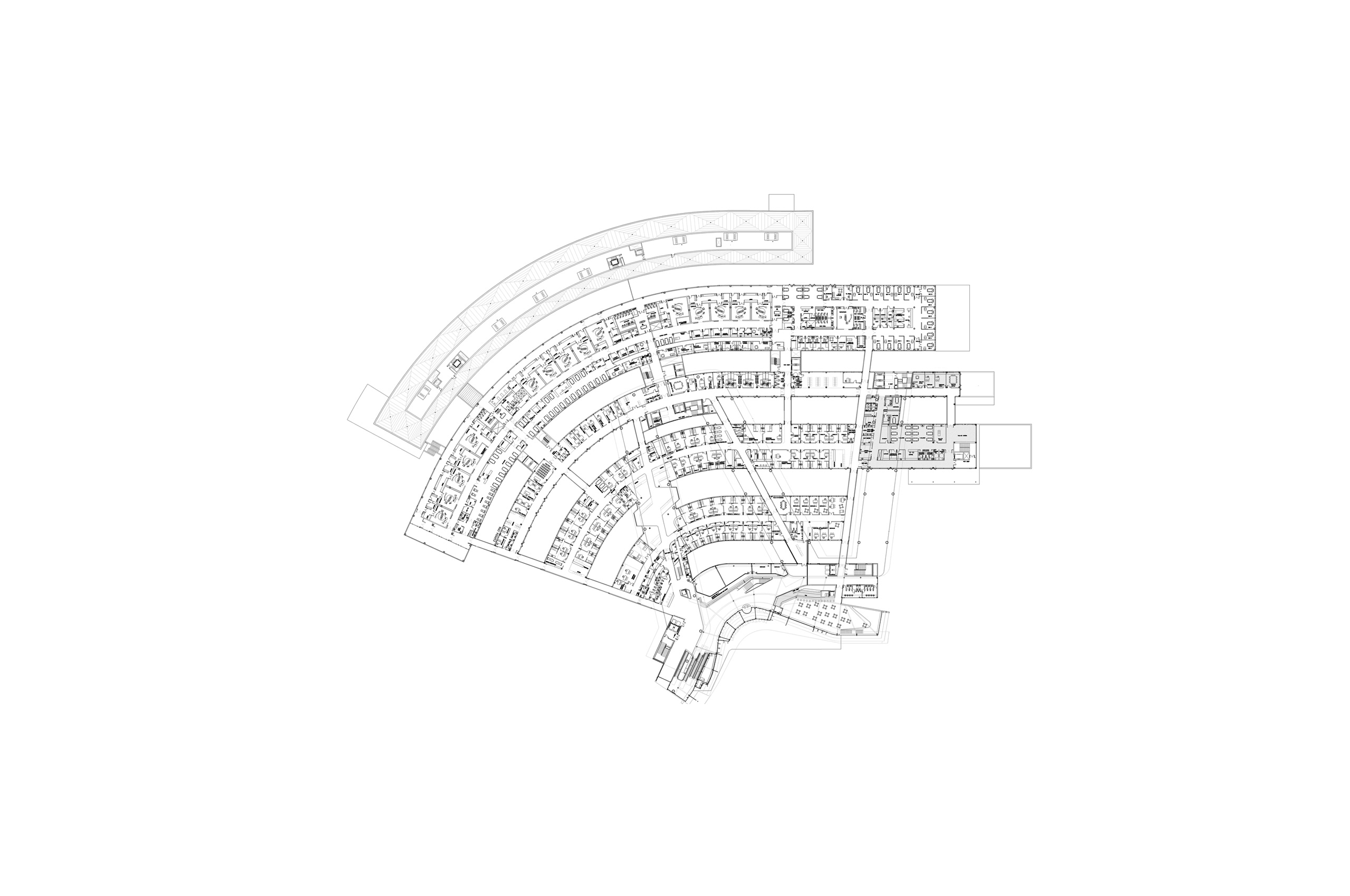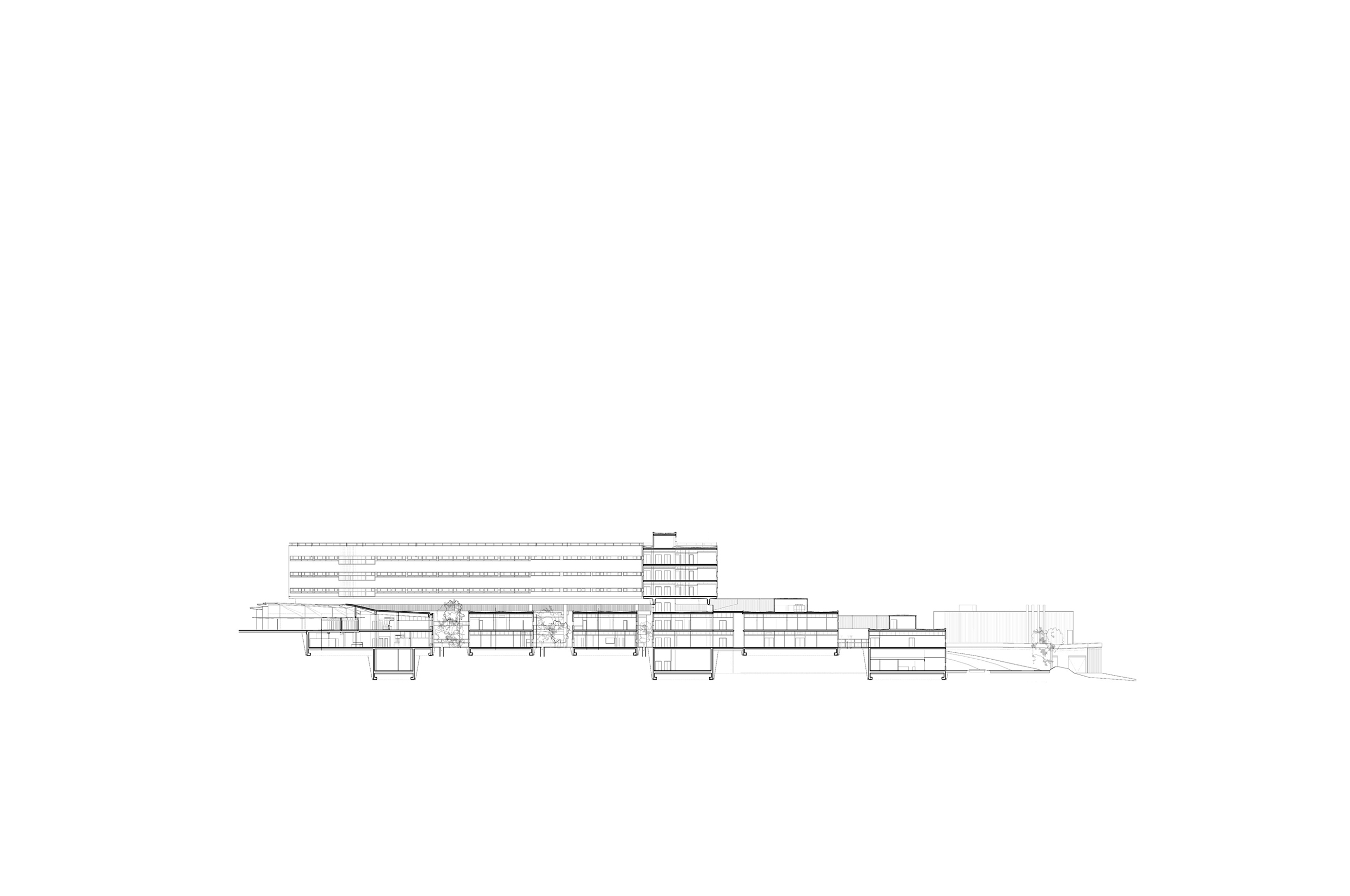 Se ha adoptado un esquema el cual, utilizando la planta técnica derivada de la diferenciación vertical de los modelos de torre y base, es aplicado a los modelos que agrupan usos o áreas funcionales en edificios específicos: