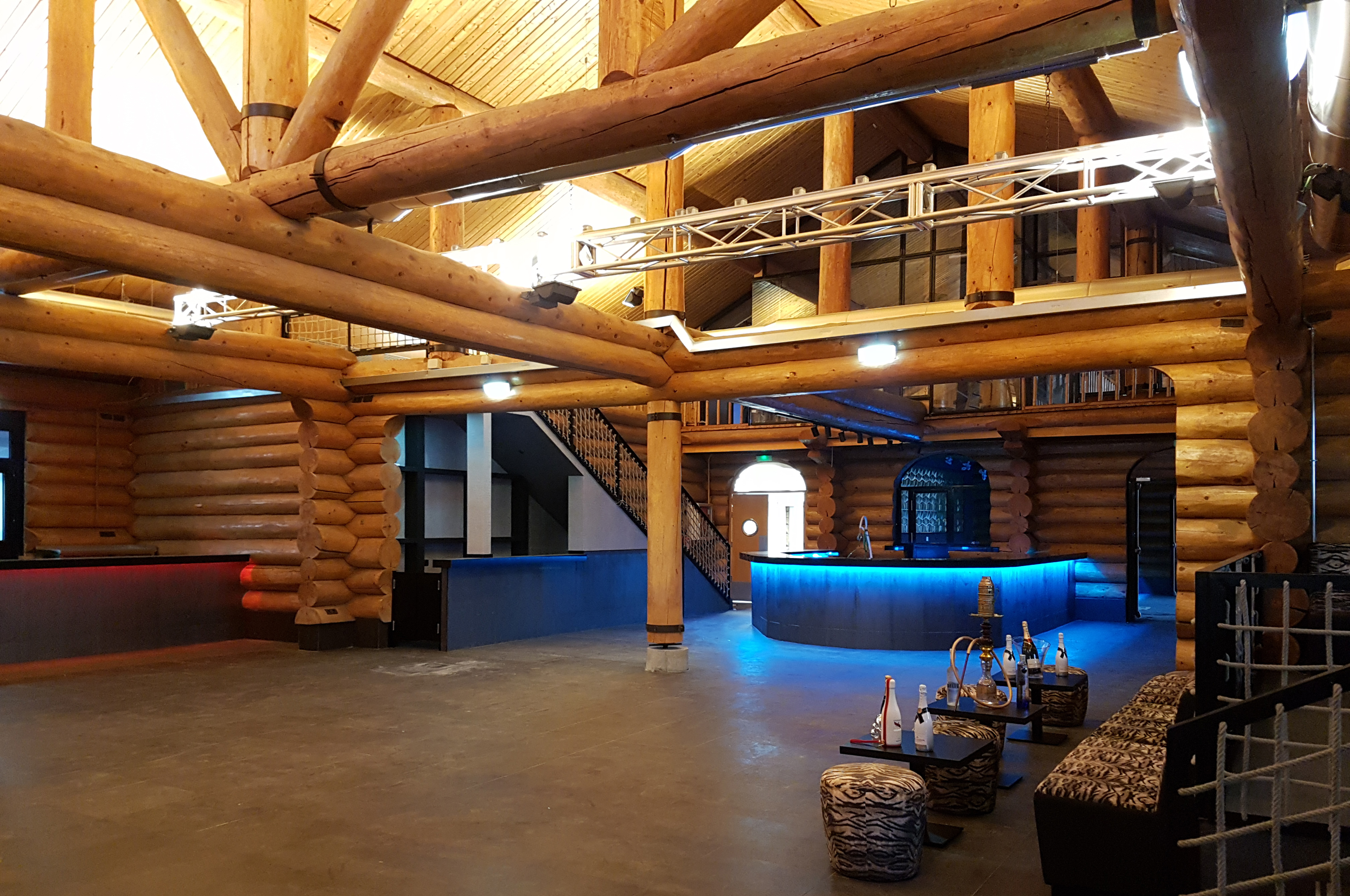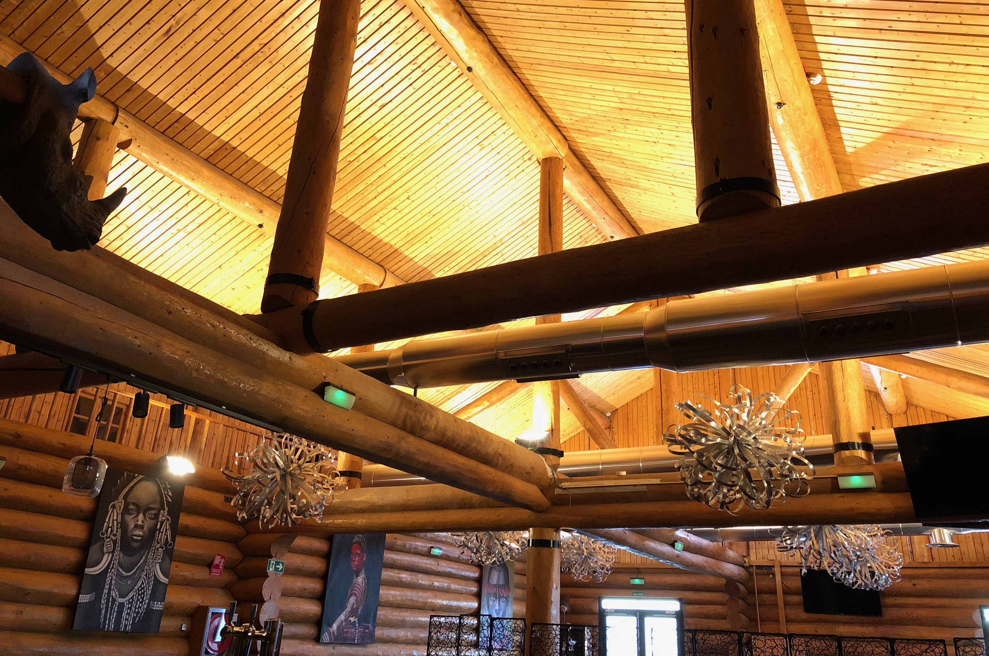 El proyecto consiste en la reforma parcial de edificaciones existentes para su adecuación a los usos de restauración, discoteca y convenciones. La edificación más representativa del conjunto objeto de reforma es una construcción de madera (tipo cabaña canadiense) que data del año 1992 cuya estructura y parte del cerramiento se ejecutó con troncos de madera de pino de diámetro medio 30 cm., con una planta baja y entreplanta. El objetivo de la actuación es hacer visible el valor del sistema constructivo, limpiando los elementos secundarios que existían e incorporando aquellos necesarios para la actividad que en ella se va a desarrollar. Por otro lado existe una edificación anexa exterior de estructura metálica ligera anexa a la construcción principal que se acondiciona, manteniendo su carácter ligero y abierto al exterior. Por último se delimita un ámbito exterior de urbanización de la parcela con viario, aparcamiento, áreas peatonales y ajardinadas.